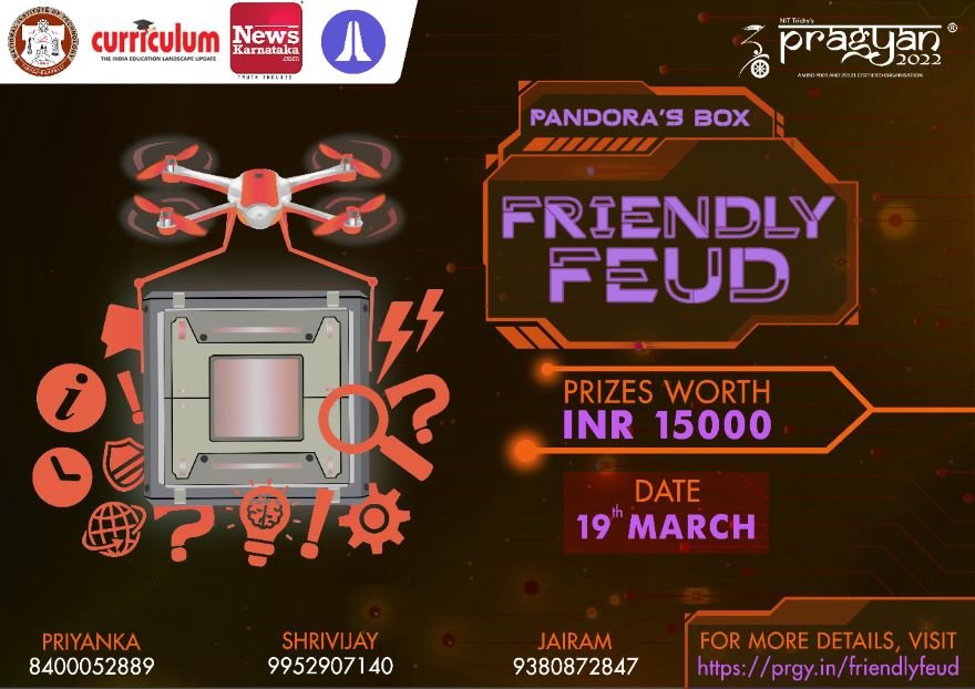 Pragyan ’22 of NIT Trichy is here! It will present the Pandora’s Box Cluster that will feature two novel events– Friendly Feud and We Are Swift on March 17 and March 19 respectively. The exciting events will test your imagination and ability to think on your feet. Time is of the essence, as contestants will have to reach the end of their thinking capacity to claim the lucrative prizes that are up for grabs. So, hurry up, and register at prgy.in/pandorasbox.